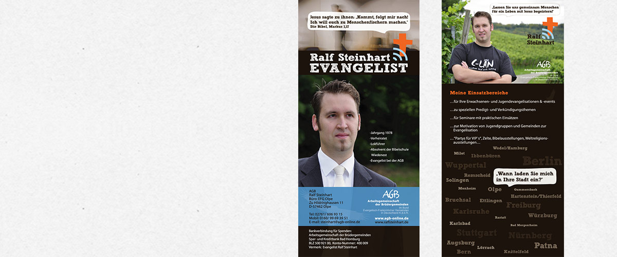 Ralf Steinhart is an Evangelist, serving Europe’s churches and organizations since 2003.For this one we have been asked to create a hands-on down-to-earth design.